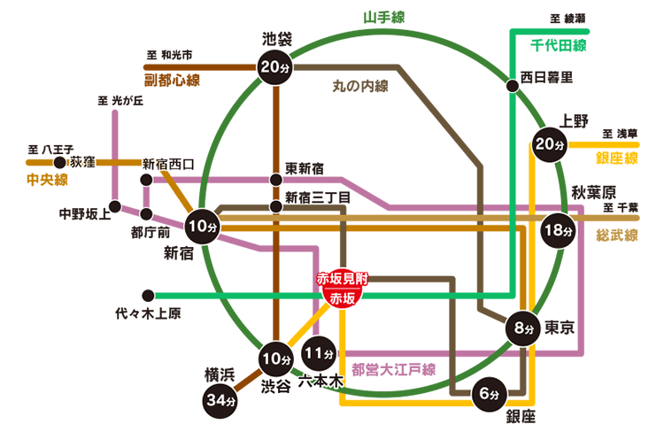 | [赤坂見附駅(東京メトロ各線)] | 10番出口より徒歩5分 |