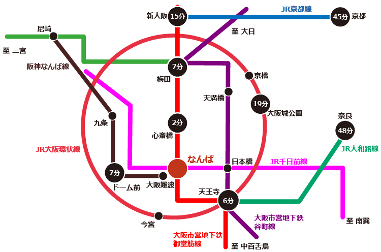 JRなんば駅地下道徒歩5分 14番出口 徒歩4分 |