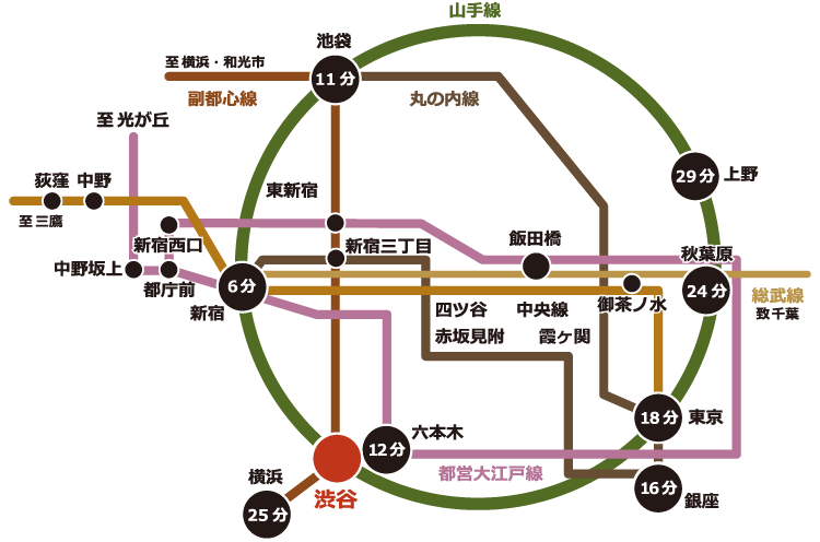 | [地下鉄]渋谷駅(銀座線/半蔵門線/副都心線) | A6番出口 徒歩3分 |